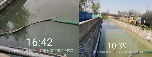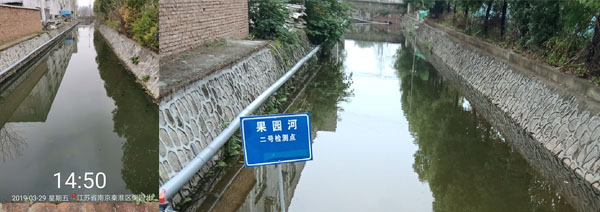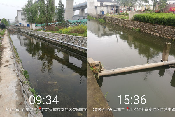 秦淮區(qū)果園河水體黑臭應(yīng)急治理工程,于2019年3月29日啟動。果園河應(yīng)急治理周期為30日歷天治理期內(nèi),采用RhP體系技術(shù),運用多種實施措施,僅3天水體臭味消除、水色轉(zhuǎn)為綠色、透明度提升到清澈見底。至4月10日,果園河水生態(tài)系統(tǒng)正在良性發(fā)展,水生態(tài)多樣性開始呈現(xiàn)、水質(zhì)指標(biāo)氨氮下降至5.0mg/L以下、溶解氧提升至4.0mg/L以上。