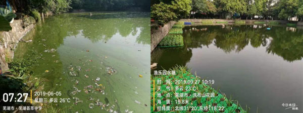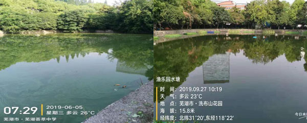 截止9月16日,蕪湖薈萃中學(xué)校內(nèi)水塘治理效果如下: