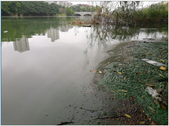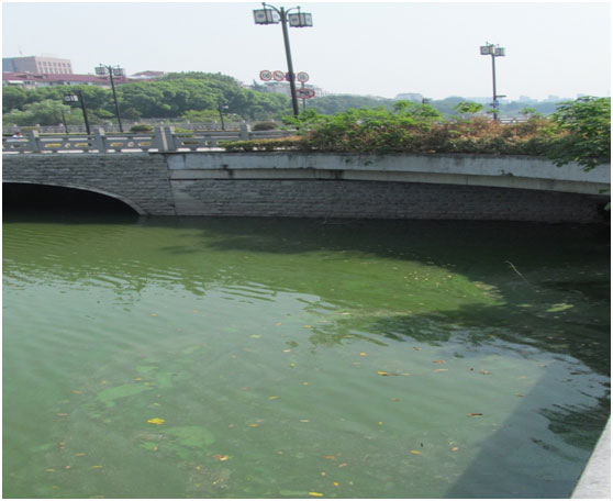 近年來,隨著污染的長期累積,西河水體逐漸不堪重負,富營養(yǎng)化嚴重,水質(zhì)呈劣V類,水域的自然生態(tài)系統(tǒng)、生物多樣性和良性的食物鏈遭到破壞,耐污能力很強的藍藻肆意生長,而藍藻因表面被包裹膠狀的多糖類物質(zhì)難以被魚類攝食,不能形成食物鏈,于是藍藻爆發(fā)成害,水體伴有異味。