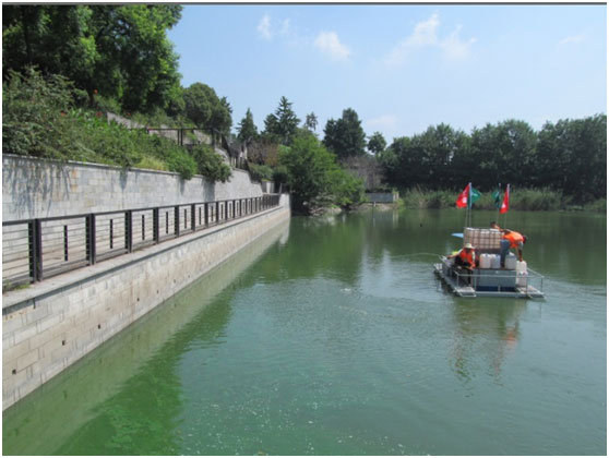 護城河?xùn)|河藍藻持續(xù)生長爆發(fā),大量藍藻聚積在西河入口,隨水而下流入西河,加劇西河藍藻水華形成,對西河水域造成藍藻反復(fù)富集現(xiàn)象。