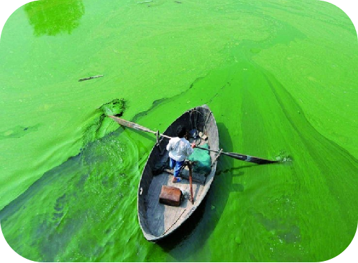 ? ? ? ? ? ? ? ? ? -藍(lán)藻(藍(lán)細(xì)菌)是“制氧菌”,喜歡靠陽光和水里的無機鹽(像化肥)瘋狂繁殖,形成水華。