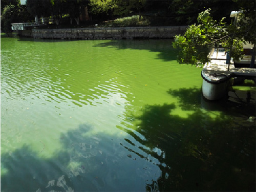 近年來,隨著污染的長期累積,銀河公園水體逐漸不堪重負(fù),富營養(yǎng)化嚴(yán)重,水質(zhì)呈劣V類,水域的自然生態(tài)系統(tǒng)、生物多樣性和良性的食物鏈遭到破壞,耐污能力很強(qiáng)的藍(lán)藻肆意生長,而藍(lán)藻因表面被包裹膠狀的多糖類物質(zhì)難以被魚類攝食,不能形成食物鏈,于是連續(xù)多年藍(lán)藻爆發(fā)成害,水體伴有異味。多家機(jī)構(gòu)先后采用清淤、打撈、物理的、化學(xué)的等各種傳統(tǒng)治理方法對(duì)銀河公園進(jìn)行治理,均未取得顯著成效。