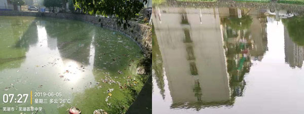 截止9月16日,蕪湖薈萃中學(xué)校內(nèi)水塘治理效果如下: