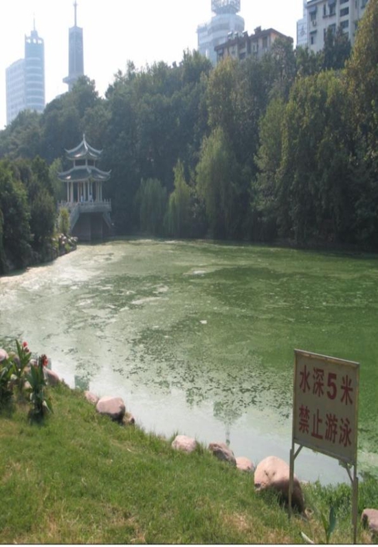 銀河公園水質(zhì)監(jiān)測(cè)指標(biāo)為地表水劣V類,耐污力很強(qiáng)的藍(lán)藻肆意生長,連續(xù)多年藍(lán)藻爆發(fā)成害,水體伴有異臭味,呈現(xiàn)嚴(yán)重富營養(yǎng)化狀況。